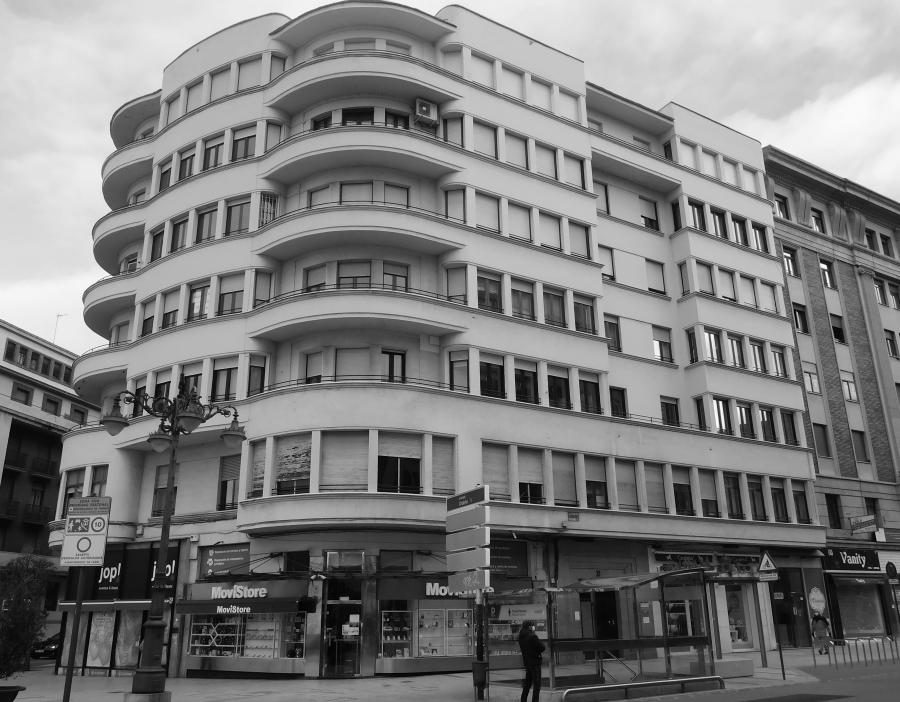 Resulta chocante que en 1940, apoteosis del franquismo alineado con los nazis, una familia de orden y afecta al régimen promoviera un edificio, enseña de su proyección social, con una fachada de estilo expresionista, que sus amigos alemanes habían catalogado de arte degenerado, judeo-masónico-marxista, en la jerga y el pensamiento de la época. Máxime cuando en España ya campaba el clasicismo escurialense como estandarte arquitectónico del antiguo imperio, y del que empezaba a amanecer.