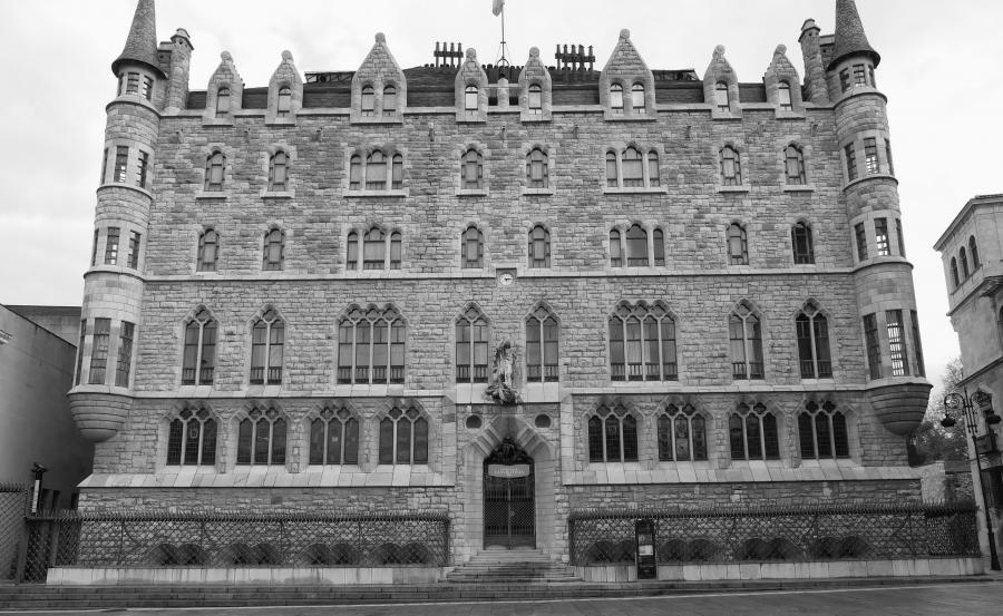Original en el conjunto de la obra de Gaudí, que fuera de Cataluña, su entorno natural, apuesta por una especie de historicismo neogótico que debió considerar más apropiado para un contexto como el de León, donde el pasado tiene tanto peso, más a finales del siglo XIX que ahora.
