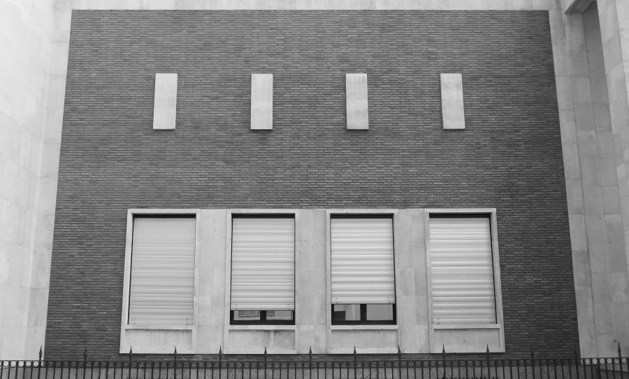 En concordancia con estos presupuestos los materiales de las fachadas son nobles: ladrillo recocho “de calidad superior”, aplacado de caliza blanca y zócalo de granito. También se ocultan los faldones de la cubierta con el fin de mantener el protagonismo absoluto de los planos de fachada.