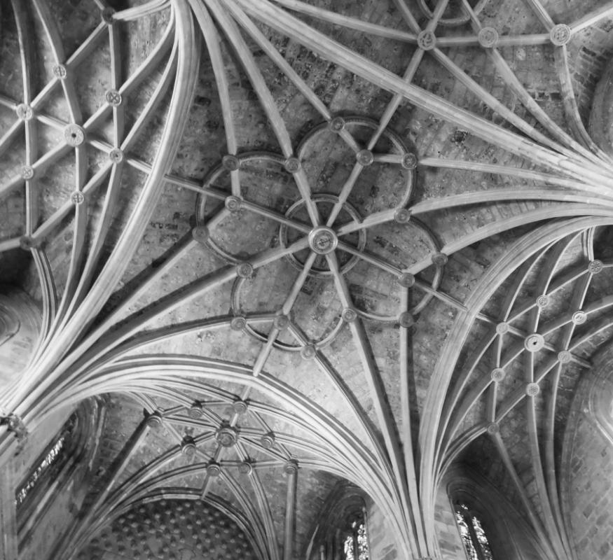 Frente a la ligereza del gótico en sus principales fases, el edificio ofrece una imagen sólida con predominio del macizo sobre el vano, aunque parcialmente compensada con la gracilidad de las bóvedas de crucería, de formas geométricas entrelazadas.