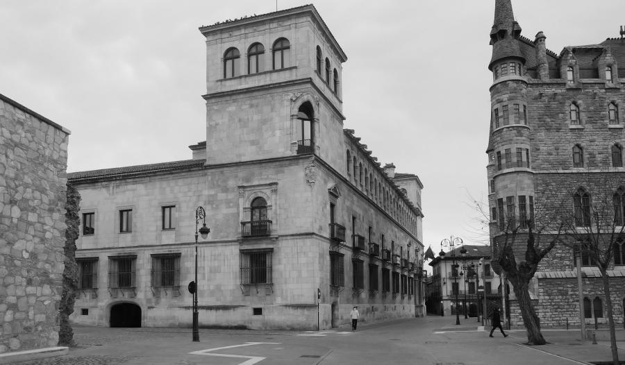 El palacio de los Guzmanes comenzó a erigirse en la segunda mitad del siglo XVI (1558) para alcanzar un estado completo o íntegro cuatrocientos veinticinco años después.