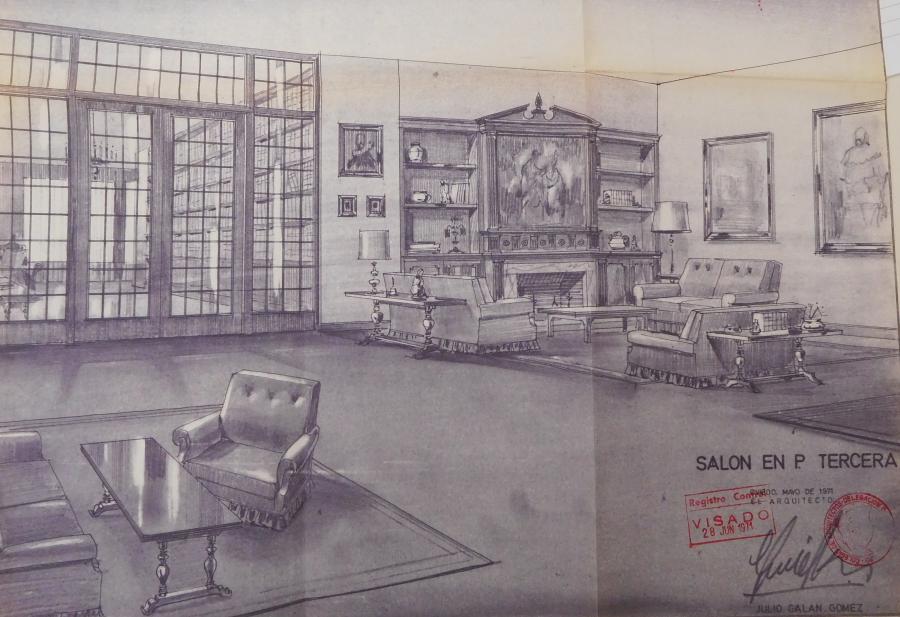 Tal despliegue de modernidad se enmascaró en las plantas nobles donde primaba un concepto suntuario bastante más anticuado, muy probablemente al gusto de los rectores de la institución, que por momentos asemejaba al estilo “parador”, llevado a su versión más anacrónica.