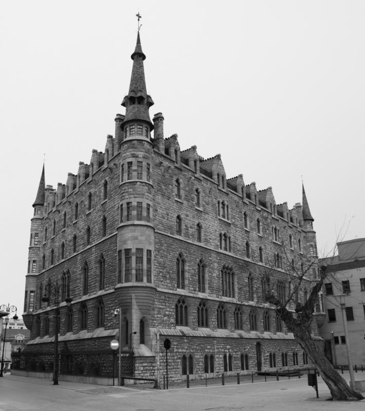 Original en el conjunto de la obra de Gaudí, que fuera de Cataluña, su entorno natural, apuesta por una especie de historicismo neogótico que debió considerar más apropiado para un contexto como el de León, donde el pasado tiene tanto peso, más a finales del siglo XIX que ahora.