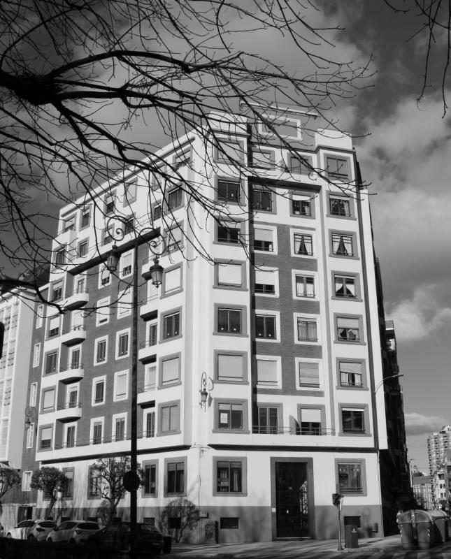 A modo de resumen, cabe afirmar que el autor sacrificó aspectos funcionales en beneficio de la consecución de la imagen deseada: robusta y moderadamente moderna. Esta disyuntiva, no siempre bien resuelta, queda especialmente de manifiesto en ocho balcones inaccesibles desde la vivienda, salvo que se salte a través de la ventana del baño adjunto que, por cierto, está emplazado en la crujía de fachada, incumpliendo las pautas de distribución que llevan al interior las estancias “técnicas” y de servicio, en torno al patio de luces.