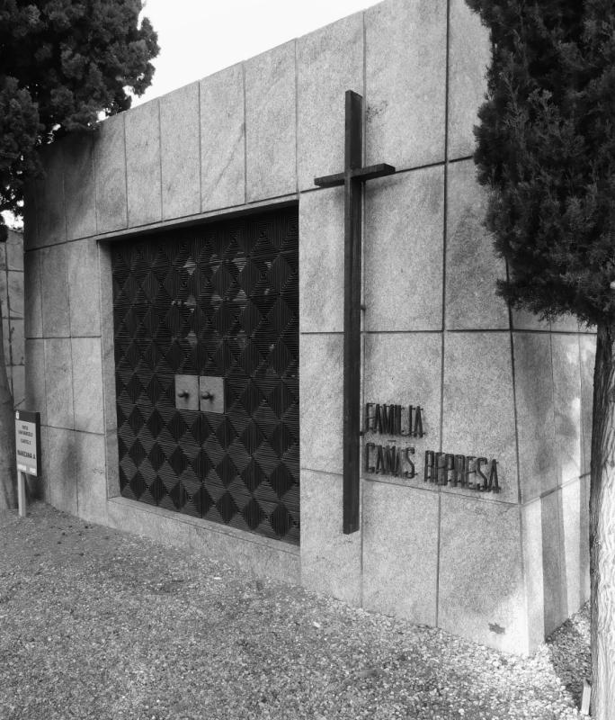 Por esa misma zona, el panteón de la familia Cañas, proyectado por el arquitecto Ramón Cañas Represa, hijo de Ramón Cañas del Río, ofrece una visión más moderna y lacónica de la arquitectura funeraria, mediante paredes en talud, aplacados pétreos con las juntas biseladas, y en la puerta, una magnífica reja, muy tupida, de inspiración románica.