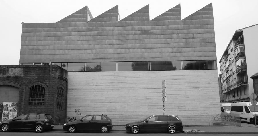 El deambulatorio es la pieza más deudora de las modas del momento, que también rigen en una disciplina perdurable como la arquitectura, con fachadas de tablero fenólico, que ha envejecido razonablemente, y, en la planta baja, un bosque de esbeltas columnas, dispuestas de modo irregular, verticales o inclinadas.
