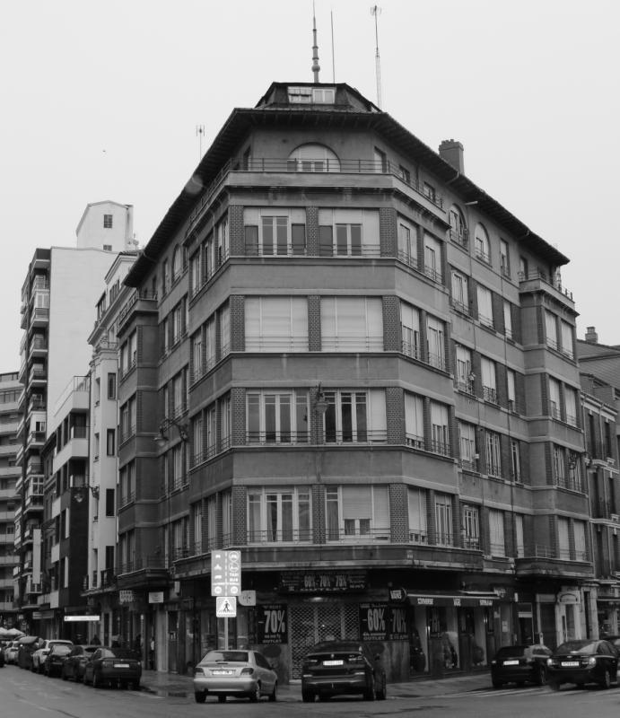 La imagen del edificio ganó mucho con el realce de dos pisos y transmite una sensación de ligereza, gracias a los cuerpos en vuelo, el predominio del vano sobre el macizo y la grácil proporción de la fachada al chaflán. El empleo de ventanas con forma de arco en la planta superior aporta un afortunado contrapunto a la vez que dota al edificio de un rasgo propio que lo distingue, sin romper con los invariantes compositivos que caracterizan a muchos inmuebles coetáneos del Ensanche.