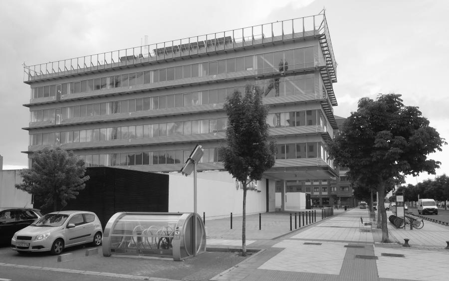 Sea por una u otra causa, se acabó por desmantelar ese envoltorio. El problema es que el edificio ha quedado desnudo, o en paños menores, exhibiendo sus vergüenzas porque los cerramientos que ahora sirven de fachadas no se diseñaron para tal fin y ofrecen un aspecto entre desaliñado y ortopédico. Para devolverle la dignidad, habría que restituir esa segunda piel, tal vez diferente, aunque recuperando la voluntad abstracta del proyecto. Un muy interesante ejercicio de arquitectura.