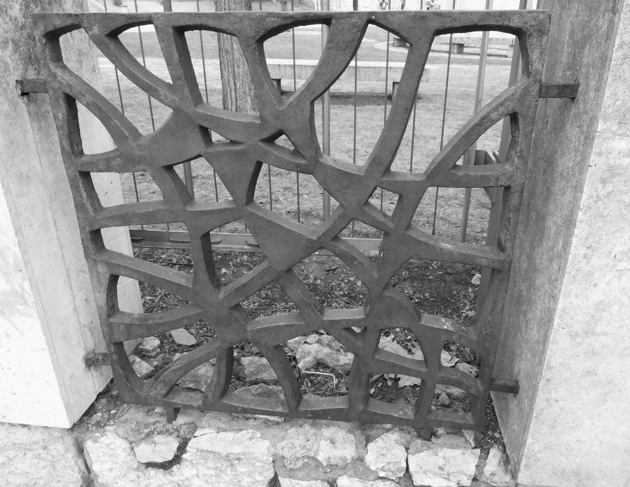 Elementos secundarios denotan el esmero en el diseño, como la cancela bajo la marquesina que cobija el acceso desde el paseo de la Facultad y, sobre todo, una artísticas piezas de hierro fundido empleadas en la cerca del patio.