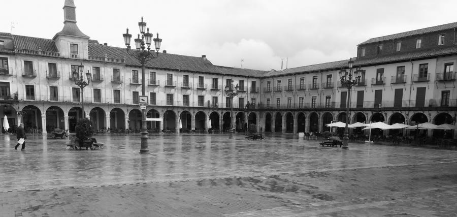 El paisaje urbano medieval es imprevisible por su propia naturaleza. Las calles sinuosas no ofrecen perspectivas lejanas y la irregularidad es sinónimo de sorpresa. Por el contrario, la Plaza Mayor se percibe en un golpe de vista. Si accedemos desde una esquina, todos sus lados son visibles. En un símil cinematográfico, el viario medieval es un “travelling” y la Plaza Mayor un plano panorámico.
