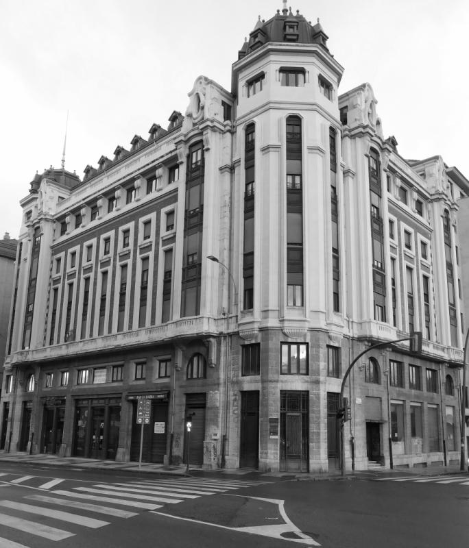Se inauguró en 1929 con un hotel, llamado “del Norte” ocupando una pequeña parte del edificio y que dejó su impronta en el portal de entrada, situada en la esquina que mira al puente, pues se conservan los vanos que daban acceso a la oficina y sala-escritorio del mismo. Finalmente todo el inmueble se destinó a vivienda de alto standing en renta.