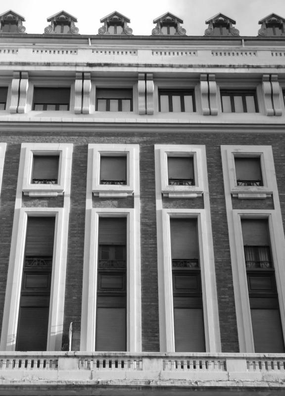 Salvo la sustitución de ventanas de madera por otras de aluminio, las fachadas presentan un estado de conservación más que aceptable, rasgo que habla elogiosamente del proyectista, de los constructores y de la comunidad de propietarios que ha gestionado la ya dilatada vida de este inmueble concebido para no pasar desapercibido.