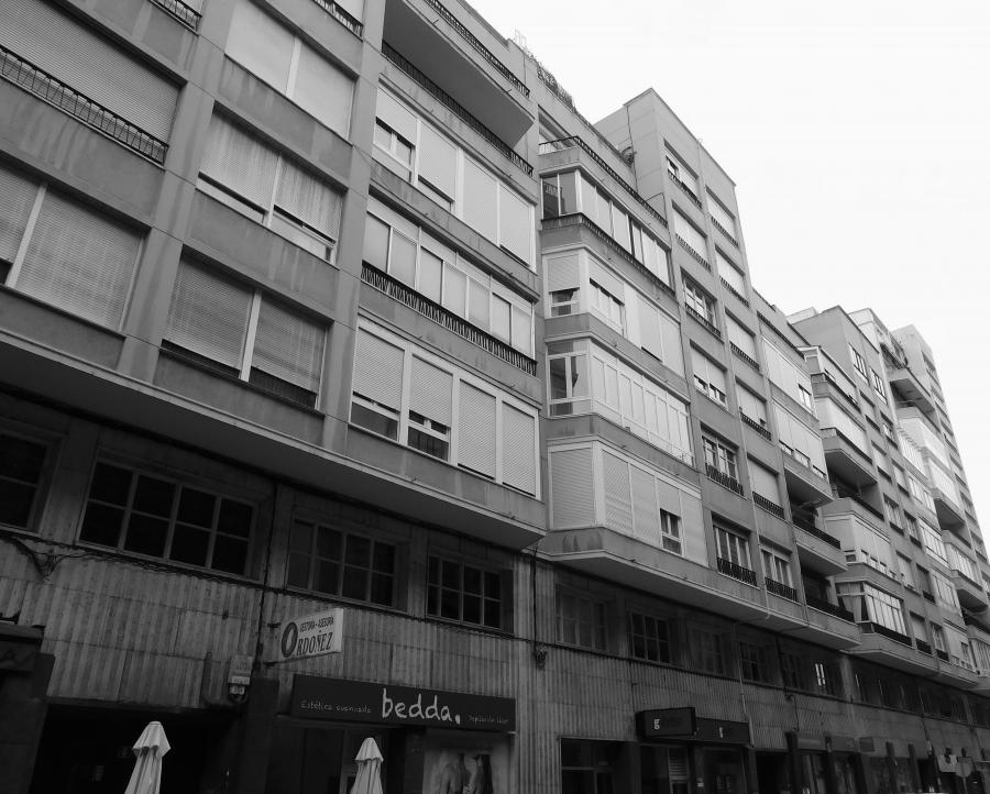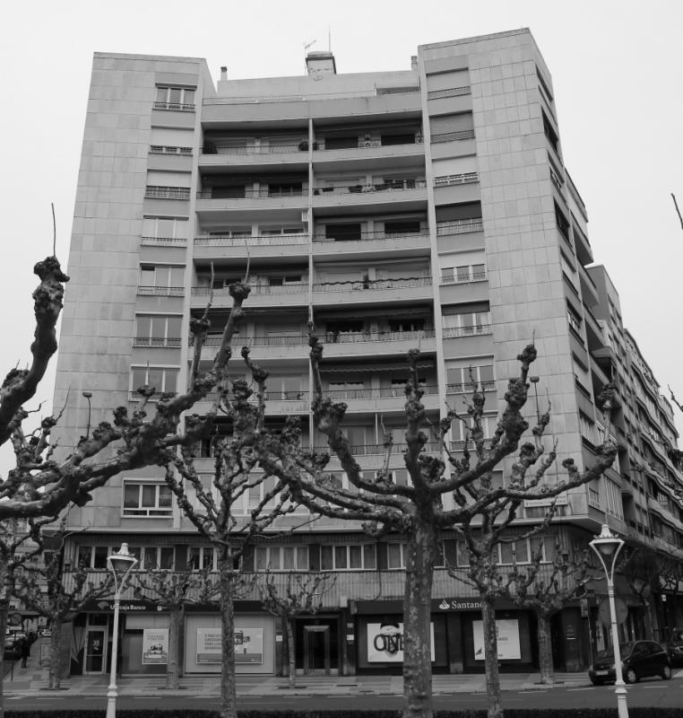 Así por ejemplo, el garage en planta baja -una dotación novedosa para la época-, con acceso desde la calle Ramiro Valbuena y situado en la parte trasera de la parcela, da servicio exclusivamente a las viviendas del bloque de lujo, que también dispone, como otro rasgo diferenciado, de dos núcleos de comunicación vertical con objeto de segregar las circulaciones, confinando las de servicio a una posición discreta. También es más generoso el programa funcional y la asignación de superficies, pues el edificio señorial tiene sólo dos viviendas por planta en contraste con las cuatro de los restantes.