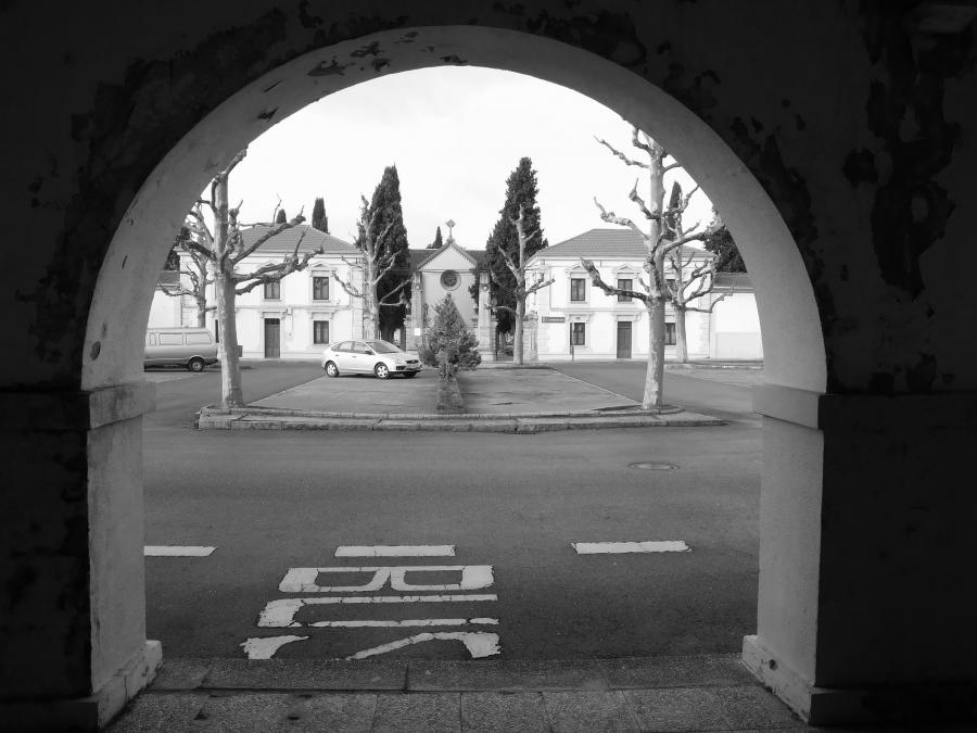 Cerca de la “capilla laica” hay un grupo de panteones iguales, llamados de San Carlos que parece una urbanización de chalets de lujo: suntuosos, iguales y en torno a una zona verde. Al lado, los nichos de Santa Marina asemejan unos bloques de vivienda colectiva del barrio del Egido o de San Mamés. Y los nichos que cerraban el recinto previo a la ampliación son, en su considerable altura y enorme desarrollo longitudinal, como el edificio Abelló del cementerio. Luego vienen los “chalets” adosados, de clase media, con sus revestimientos de granito pulido, cubiertas a dos aguas de pizarra o teja de cemento negra y puertas de aluminio anodizado, en una recreación bastante literal de la arquitectura residencial convencional, en su versión más banal.